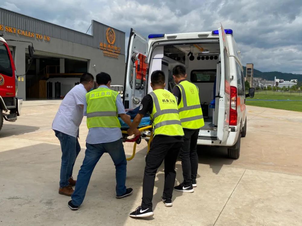 飛機(jī)落地后,救護(hù)人員快速將乘客抬上救護(hù)車送醫(yī)